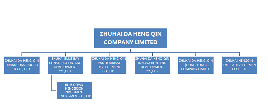 Remark: ZhuHai Da Heng Qin Urban Construction Co., Ltd,Zhuhai Da Heng Qin Pan-Tourism Development Co.,Ltd.ZhuHai Da Heng Qin Innovation And Development Co.,Ltd. Da Hengqin(Hong Kong) Company Limited and Blue Bay Construction and Development Co., Ltd. are the wholly-owned subsidiaries of Zhuhai Da Heng Qin Company Ltd.;Zhuhai Heng Qin Energy Development Co., Ltd. are the Shareholding company.Blue Ocean Henderson Investment Development Co.,Ltd. is an indirectly non-wholly owned subsidiary of the company.